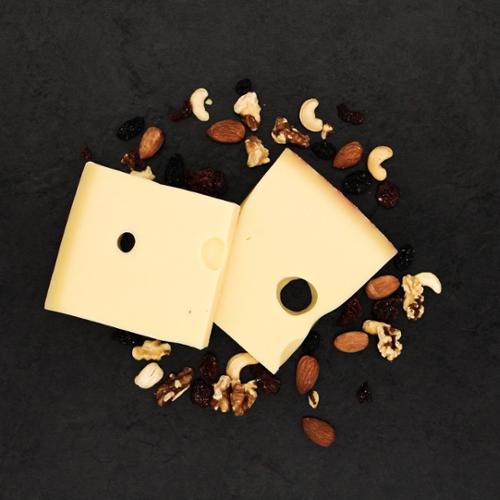 The name of this famous Swiss cheese comes from the valley of the Emme in the canton of Berne. It is a traditional, unpasteurised, hard cheese made from cow's milk. The aroma is sweet with tones of fresh-cut hay. The flavour is very fruity with a slight acidity. The most typical characteristic of Emmentaler AOP is probably its holes. They are the size of cherries or nuts, and appear during the maturing process.