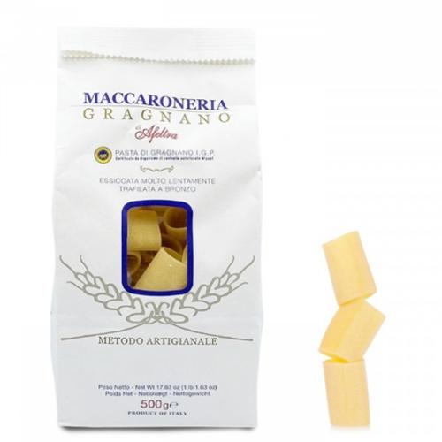 The Maccaroneria Paccheri are made using high quality durum wheat semolina. The combination of the slightly humid climate of Gragnano with the antique art of the artisan preparation of the pasta results in a truly unique product. It is the flavor of the wheat and its texture on your palate that makes Paccheri a perfect match for a limitless number of recipes.